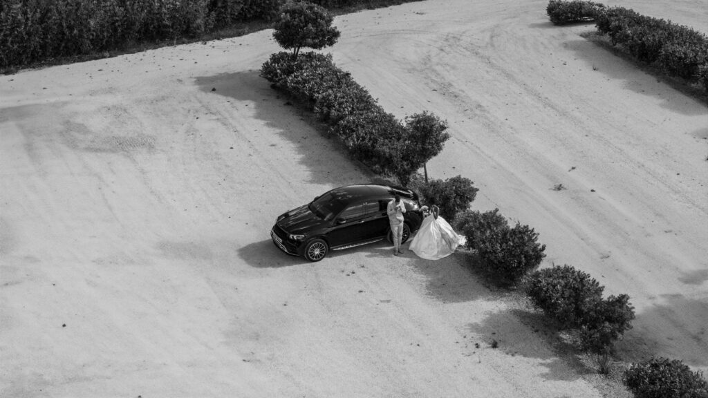 La combinaison des prises de vue par drone & des prises de vue au sol permet de créer des vidéos cinématographiques et des photos époustouflantes, capturant l’ambiance générale et les détails clés de votre mariage.